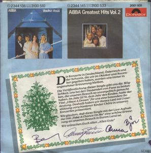 ![]() I have a dream / Take a chance on me (live) | ![]() I have a dream / Take a chance on me (live) | ![]() Rückseite der links abgebildeten Single |